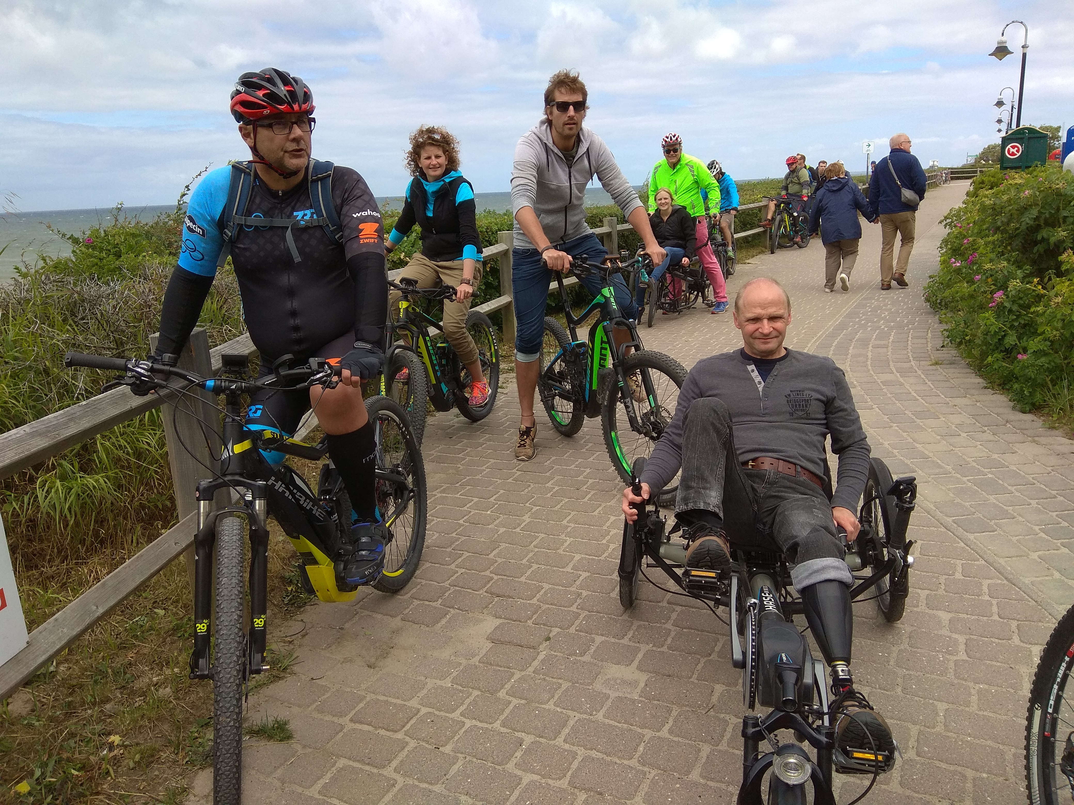 The meeting was rounded down (abgerundet) with a BBQ, the exchange between the amputees and a bicycle tour with e-mountain bikes through the Gespensterwald up to Heiligendamm. Finally, we celebrate in the Deck Beach Club directly at the Baltic Sea.